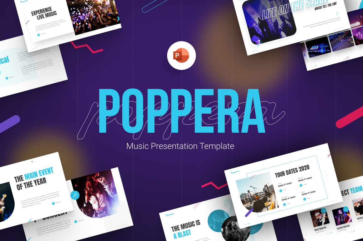 This music presentation template is fully customizable and ready for you to use. All you need to worry about is gathering all the information needed to present. Want to know the best part? This presentation template is guaranteed with updates. All you need to do is download Poppera presentation template, edit all your gathered information into the template, and voila!