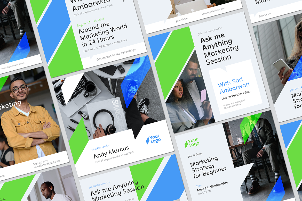 The Webinar Instagram Post Templates contains 10 Layout fully editable and customizable templates. This Instagram post template has a Minimalist, Geometric, and Modern style to enhance your feed. This Instagram Post template is suitable for your Webinar/Talkshow Event.