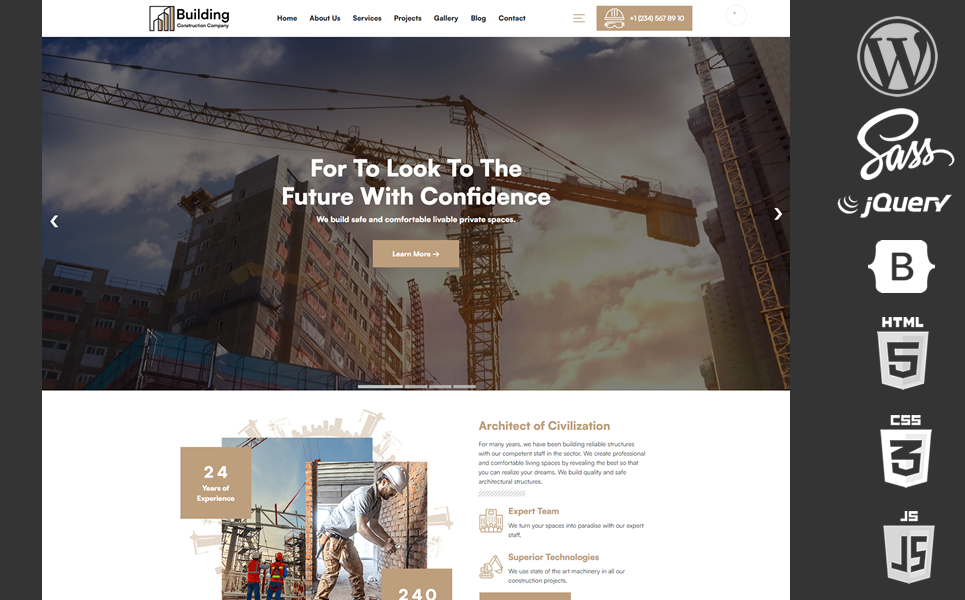 In particular, you will have a unique corporate concept construction company wordpress theme with 260 Special icon sets, 80 Special effects and 60 Special web fonts.