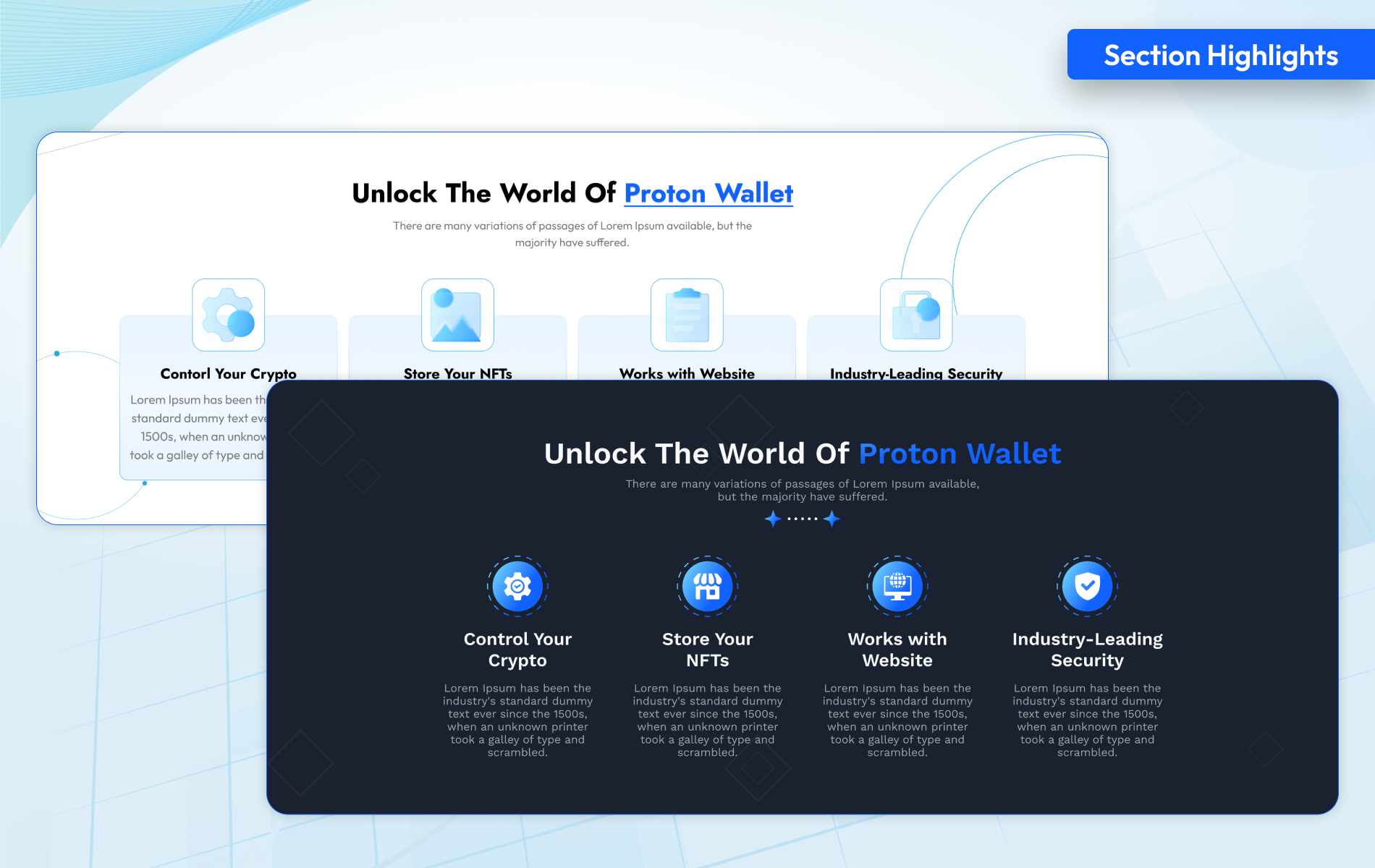 Crypto Wallet - Landing Page Figma Kit helps to highlight wallet features to users also It will provide help to its buyer's make engagements with their wallet users. It's generating the trust with application users.