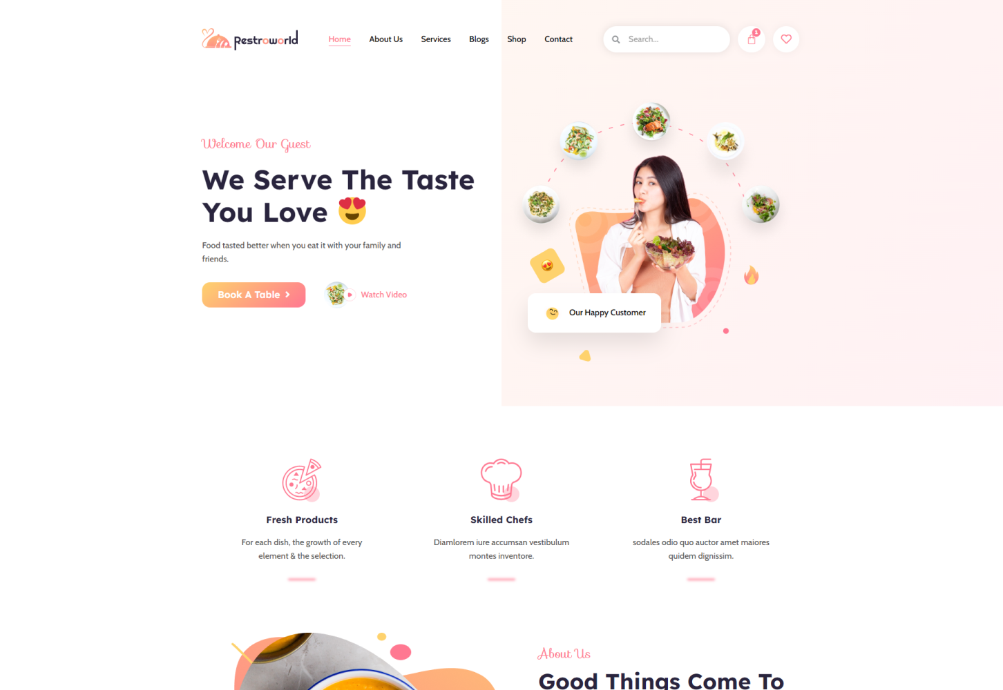 livePreviewURL : https://templatekits.techeshta.com/restro-world/