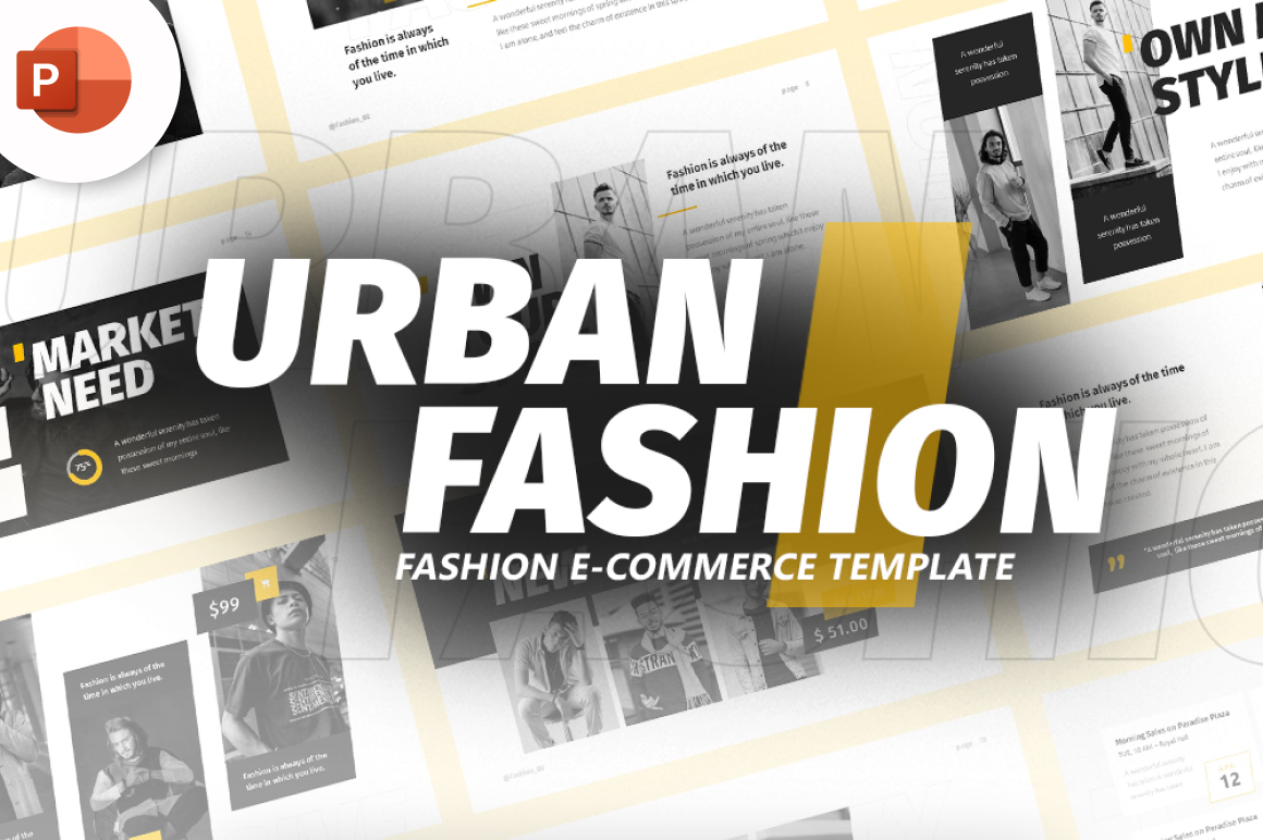 Urban Fashion PowerPoint Template provides monochrome and gold colors to show sophistication and peacefulness as you have never felt before. This template is suitable for any fashion business and project portfolio. You will find a sans-serif font with good readability for the titles, so your audience won’t miss anything. Keep calm and focus only on your message, which is the most essential thing in this presentation. Also, you can take a look at all the image layouts included with this template.