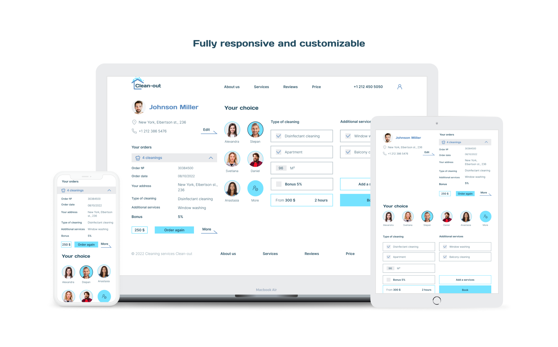 Short description : This is a ready-made landing page template for a cleaning company. It will help you create a presentable and functional advertising resource. Design and content can be customized according to individual preferences. Clean-out is suitable for any cleaning agencies, window cleaning services, dry cleaning, house service, maid services, personal cleaner website, pest control services, and all cleaning business solution providers. All layouts are completely drawn in Figma and the theme is fully responsive and looks beautiful on all screen sizes from small to large devices.