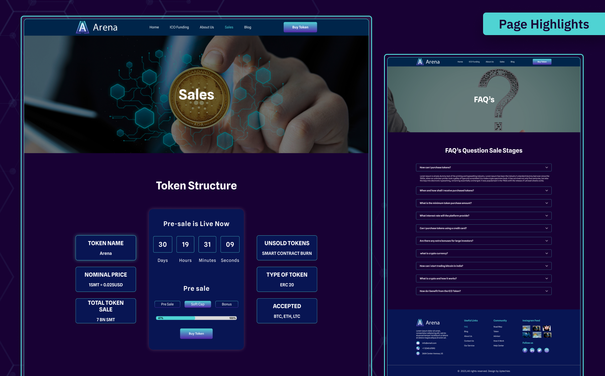 Maximize the effectiveness of your ICO campaign with Arena's strategic elements. Include call-to-action sections that encourage visitors to join your whitelist, participate in the token sale, or subscribe to your newsletter for updates. Showcase investor testimonials, endorsements, and notable partnerships to enhance your credibility and attract more potential investors.