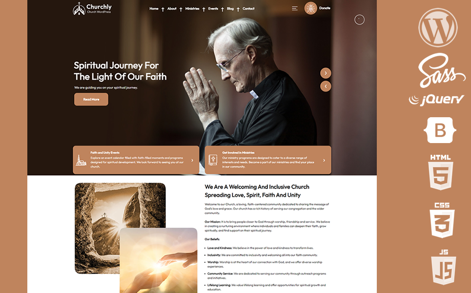 - Fast Loading Effects: Churchly prioritizes a fast-loading website with smooth transition effects, enhancing the overall user experience and keeping your audience engaged.
